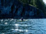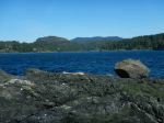 What could go wrong? Well, first there were 13 people who registered to come on this trip, but only four were able to come and three of them live on Gowlland Harbour. The day was beautifully clear and a perfect temperature. We paddled over to Gowlland Harbour Resort, who very generously allowed us to launch from their property. There was a slight breeze from the northwest, which was just a bit of extra work. By the time the last person was in the water, however, it seemed as if the wind was sufficient to reconsider the planned route and so instead of paddling over to Gowlland Island, we went upwind into North Gowlland. We got out on a beach there for a short break, even though we had not paddled for very long. In the 15 minutes or so that we were there, the wind increased noticeably so the there were small white caps. So we once again changed our plan to explore the upper reaches of North Gowlland Harbour and instead crossed over to Vigilant Islet. The bay behind the island was very sheltered and the tide was rapidly ebbing so there was lots of foreshore. A few people rambled around the Island, admiring the flowers and the views before returning to the kayaks. We had a brisk paddle back over to the north shore of Quadra Island, but were then somewhat sheltered. We poked into the inlet east of Gowlland Harbour Resort before heading back to the launching beach. We had lunch on the rocks there, enjoying the sunshine, and the view. In our fairly short paddle we saw a mink, river otter, lots of Harbour Seals, a few porpoise or dolphin (which may have been Pacific White-sided Dolphin), deer, Bald Eagles, Canada Geese, Turkey Vultures, and Great Blue Heron. It was a lovely day, but not the day we expected. (From east Gowlland Harbour 7.4 km; 4 hours with lunch and two stops)