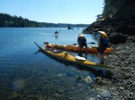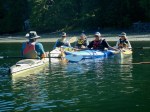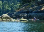 Nine people gathered at my place for a easy paddle and social on a sunny summer day. Because of the driveway, launching from here is a challenge and the tide was very low. Once in the water we paddled north to check out all the new toys at Camp Homewood. It seems they have acquired many new and different types of boats. Then on to Seascape, now called Jade Resort, to find that the sunken barge had finally been cleaned up. Unfortunately, at the taxpayers cost. On past Gowlland Resort we turned and went to the Vigilant Islets for a quick stop and to stretch our legs. On our return, there was a colony of seals on Wren Islet that were enjoying the warm sunny day. We then paddled between Fawn Islet and Stag Island to return to my home for cold beverages and appetizers provided by everyone. About 5 km and a 2 hour paddle.
