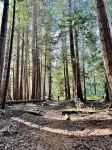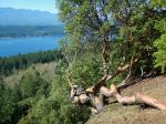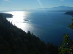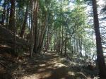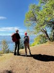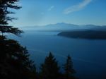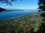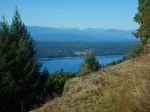 Monday – The weather was again perfect. We took the 9:40 ferry to Hornby and positioned the vehicles for a car shuffle. Starting from Mount Road, we hiked up Middle Bench in the Mt. Geoffrey Escarpment Provincial Park and almost immediately had wonderful views to the west, over Lambert Channel and Denman Island. The gradual climb continued on Outer Ridge up to the summit of Mt. Geoffrey at 330m. But the views are not at the summit, they are along the embankment with the unusual conglomerate geology. We continued on the Cliff Trail in Mt. Geoffrey Regional Park, with views that included the Hornby farmlands and the scenery to the north. We descended the dirt stairs down to Lea Smith Road and took the ferry back to Denman Island for the evening at Fillongley. The trail was very quiet and we encountered only one group of mountain bikers all day. (9.2 km, 3¾ hours, about 300m ascent) Once again the campfire was the social centre and the truly full moon rose over Hornby Island.