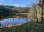 Eight brave hikers took a chance on the weather and were rewarded with clear skies and no rain. We hiked the Little Black Dress, Back Door, Silk Stockings loop (counter-clockwise) after many days of heavy rain. The trail was slippery in few sections but nothing unmanageable. The moss was bright green and the bluffs sunny, which provided a wonderful lunch stop. We enjoyed the old copper mining artifacts. Near the end of the loop, we took a side trip to the beaver damn that failed a few years ago but has since been build up again. Unfortunately, there were no sign of any beavers on this trip. (7.3 km which included the beaver damn side trip; 3¼ hours)