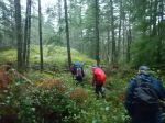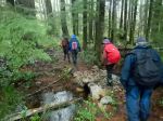 It wasn’t sure that this trip would happen with heavy rain on the days before and after the scheduled day. Also five people who wanted to go, weren’t able to come, but fortunately we still had five hikers on a dry day. Plus a dog that loved sticks. The recent logging has changed the appearance of the quite long approach on logging roads, but the trail was in better condition than we expected.