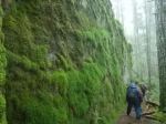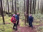 Five of us hiked the loop starting at Thompson trail head and in a counterclockwise direction came out at Hopespring Rd. It was a short walk on the road back to our vehicles on Thompson Rd. We had steady rain with most sections of trail having running water and large puddles. We trudged along not stopping for lunch but still enjoying the hike. The Three Sisters (three old growth Douglas Fir) with blackened bark from last major fire on Quadra Island are amazing to see. Another interesting feature was a rock face covered in thick moss and with all the rainfall a waterfall of moisture coming down it. Because of the wet and misty weather we did not go to any of the viewpoints, which there are several on this hike. (5.8 km,180 m, 3 hrs)
